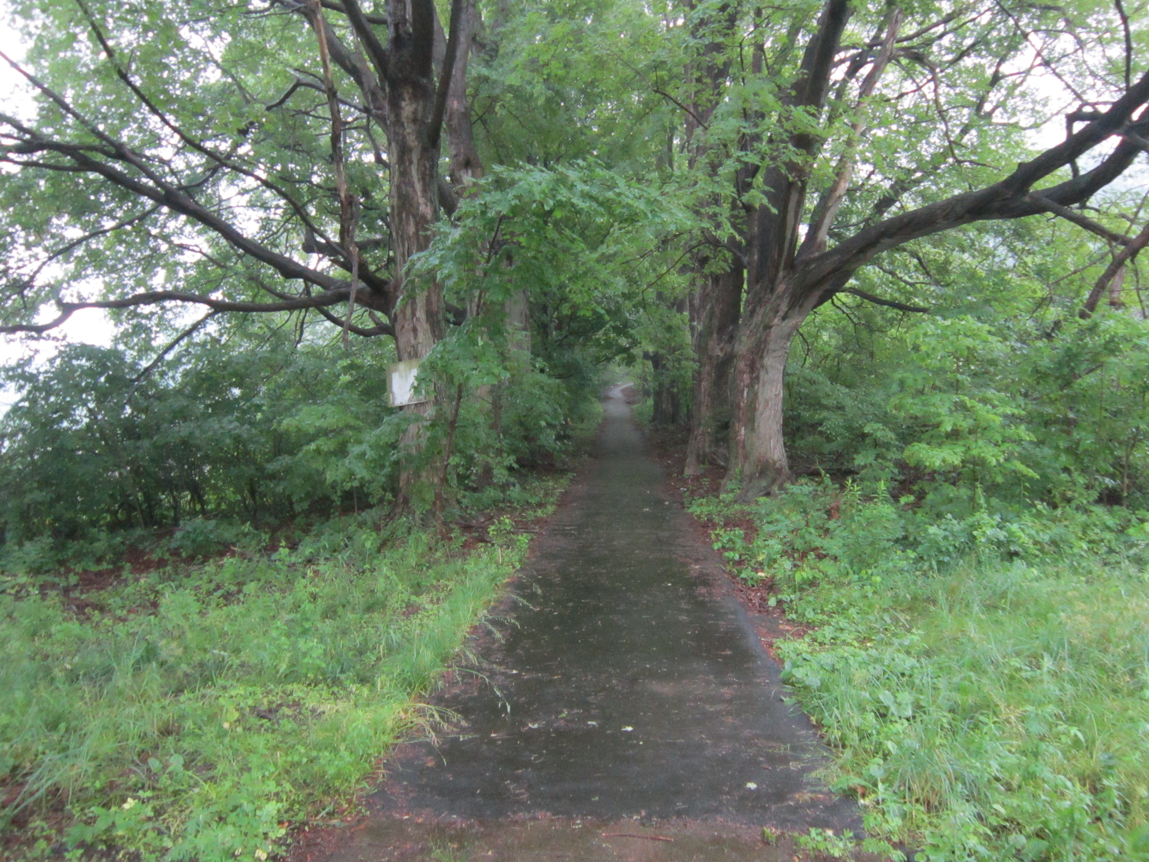 It is a sad fact of reality that those with mental health issues have often, throughout history, had to face a social stigma which only increases the further back in the historical record you go. Many patients were abandoned by their families, and in large enough numbers that a cemetery would be necessary. It’s location isn’t obvious. We didn’t know where to start looking but we took our chance with a field further down the hill. The remnants of old pipes dotted the landscape. Occasionally we came across some odd looking object we couldn’t identify just left on the ground. It was as though the demolition had stopped and whatever remained was left scattered around. No cemetery though, so we had to keep looking. Another area of the property has a long winding path that leads into the woods, with overhanging trees like something out of a creepy horror movie. Amidst the trees we found a dish and fork, and a stone which looked to have been a sign post of some sort before its metal plate was removed. But still no cemetery. The rain would increase and then recede in fits and starts. It would pour and then pull back to a slight drizzle. It was the Summer, so we weren’t exactly dressed for the occasion. D had been checking his smart phone for any help its internet connection might provide us. The directions left behind by other travelers can be found online, but you have to know how to follow them. In the dim light, I fear we misinterpreted the rudimentary map we saw as we continued to drive around for several hours.